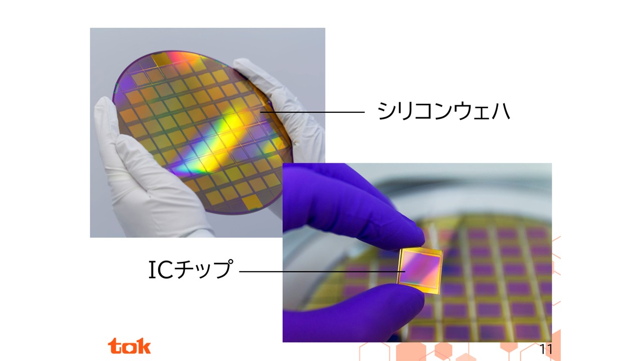 当社の主力製品は大きく分けて2つあり、1つはグローバルシェアNo.1のフォトレジスト。こちらは液体の化学薬品です。もう1つは半導体製造工程で使用されるシンナー、現像液といった高純度化学薬品です。当社は1960年代にフォトレジストの国産化に初めて成功し、それ以来フォトレジストの進化を通じて、半導体の高性能化・小型化・低消費電力化に貢献してきました。フォトレジスト、高純度化学薬品のいずれも半導体の製造工程で使用されるものですが、投資家の方から「製品がどのように使われているか分からない」というご質問をいただくので、今回はフォトレジストの役割について動画を見ながら説明したいと思います。
