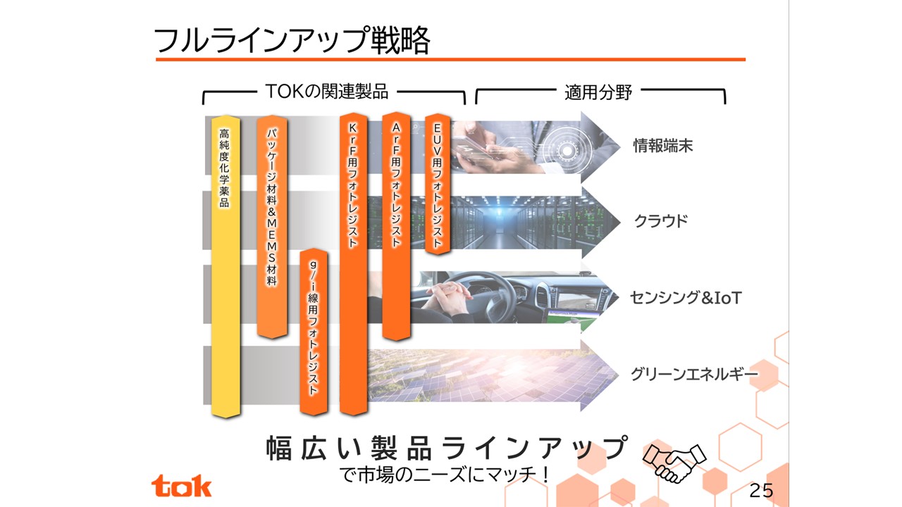 開発が進んでいるという意味では、情報端末関係とクラウドが主な成長分野だと思います。このような最先端の部分では、台湾のTSMC社や韓国のサムスン社、SKハイニックス社、アメリカのインテル社などが主要な顧客であり、そういった顧客と顧客密着戦略を通じて技術的なやり取りをすることで、どのようなニーズが今後あるのかの確認を行っており、次のどのような技術が必要であるかも含めて協議をさせていただき、開発を進めている状況です。