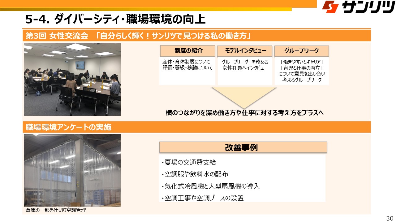 当社はダイバーシティの取り組みとして、女性交流会をはじめ、様々な取り組みを行っています。当社としては、性別や年齢を問わず皆さんにご活躍いただける場を提供する中で、さらにその中でベストな力を発揮していただける形を作っていくことが、人材不足という状況の中で最も大事な部分であると考えています。今後も職場環境の改善を進めながら、これらの活動を続けていきたいと思っています。