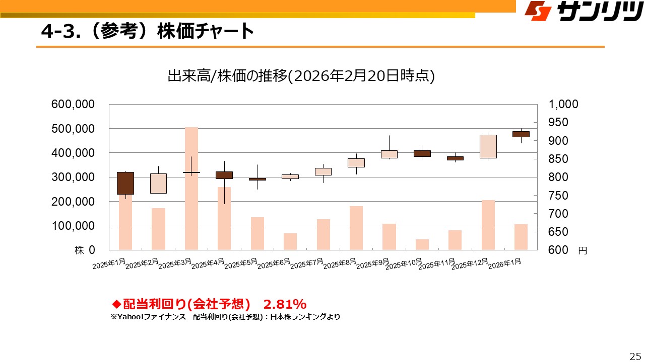 こちらは参考資料で、直近1年間の出来高株価推移の資料です。
